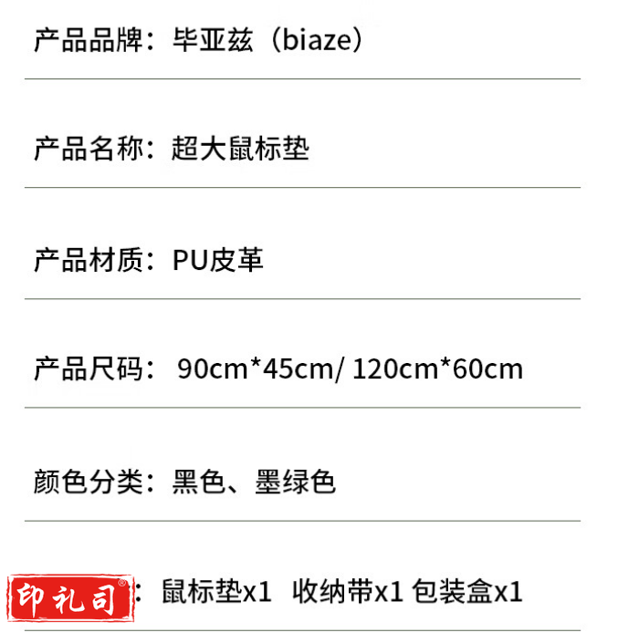 毕亚兹 锁边大号鼠标垫 B128-60*30锁边单面 黑