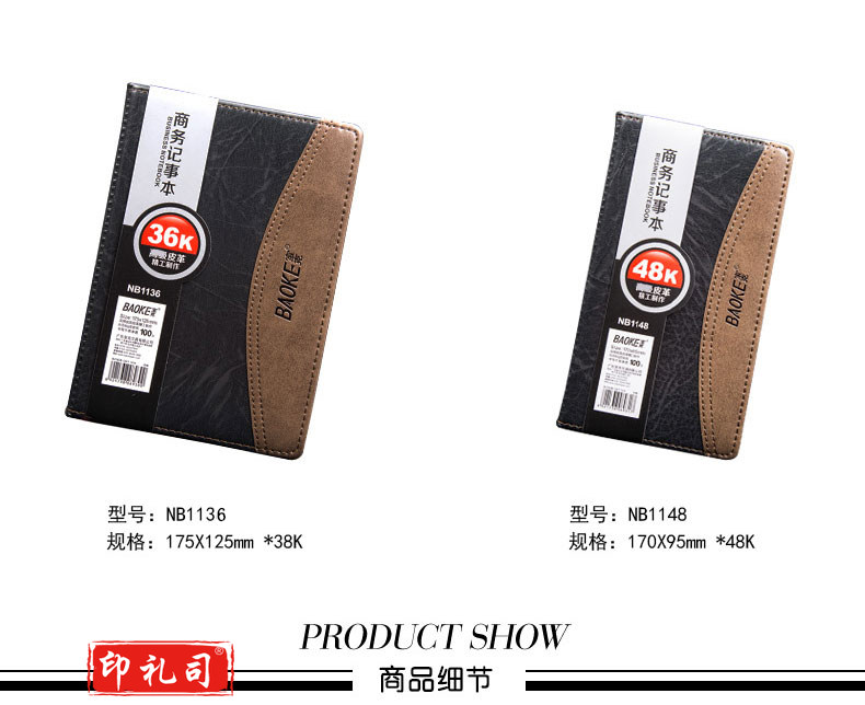 宝克(BAOKE)NB1148 48k笔记本文具本子日记本记事本NB1148商务办公用品活页本手账本
