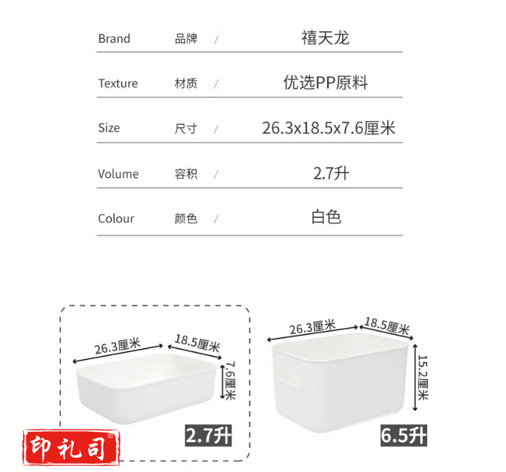 禧天龙简约桌面收纳盒多功能储物盒 2.7L小号1个装奶白