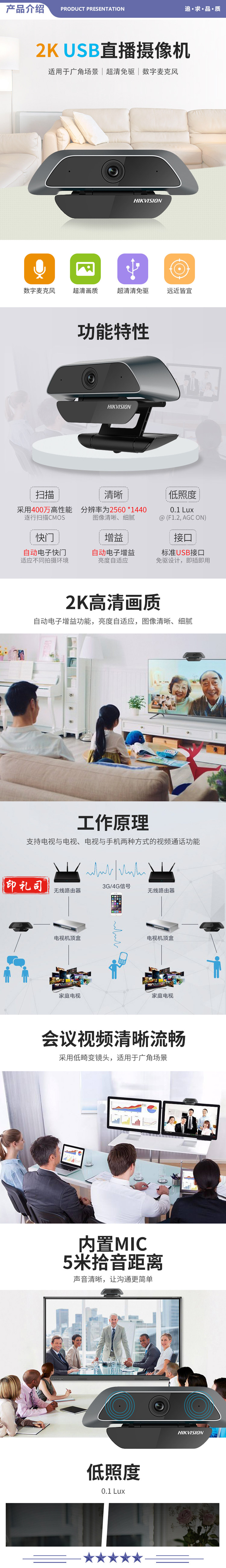 海康威视 U14 会议摄像头400万2K高清远程视频通话直播网课考研复试教学麦克风免驱