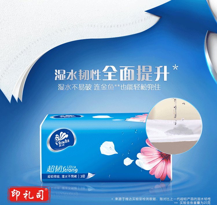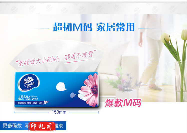 维达(Vinda)抽纸【赵丽颖推荐】超韧3层150抽*24包M码 湿水不易破 纸巾 整箱