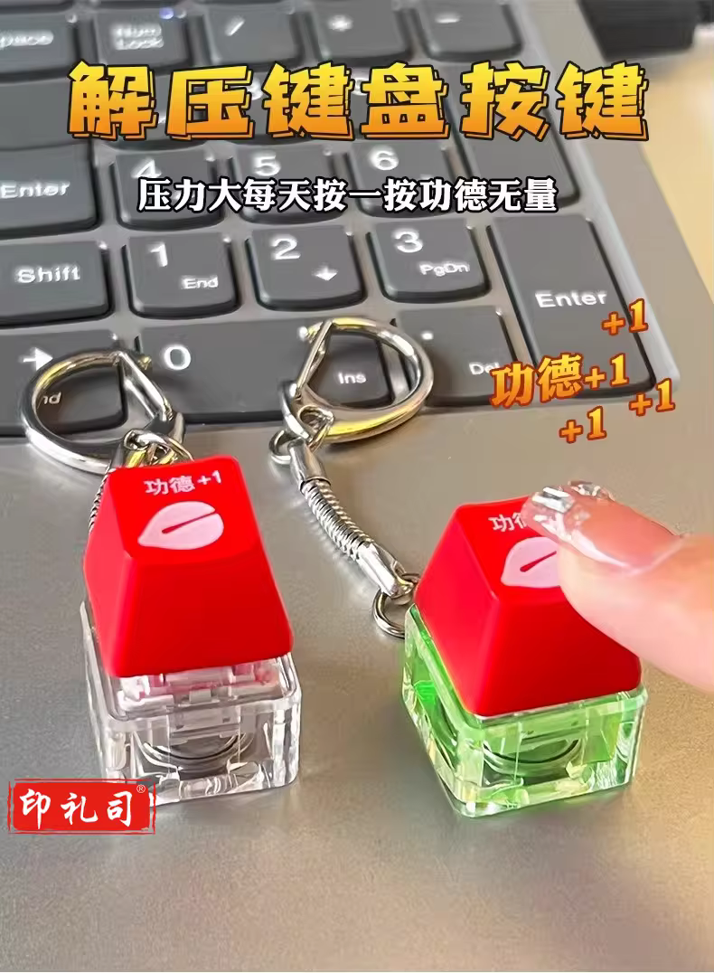 解压按键木鱼发光键帽积攒器按压钥匙扣挂件赛博朋克风办公室