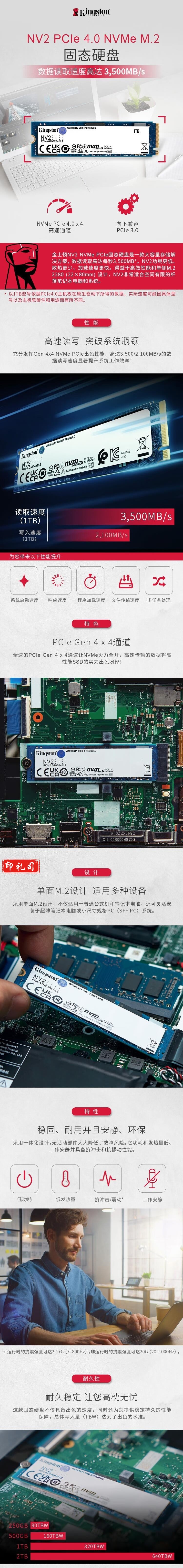 金士顿(Kingston)移动固态硬盘NV2 m.2固态硬盘2280 Nvme协议 NV2 1TB 高速NVMe协议 PJ.874