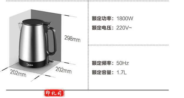 美的(Midea) 热水壶 304不锈钢 电水壶 聚水环不溅烫1.7L大容量电热烧水壶 MK-SH17X103