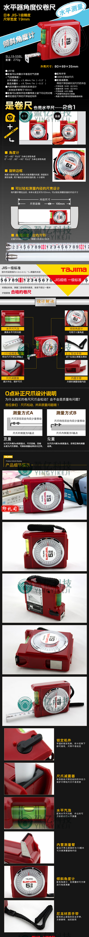 tajima田岛多功能钢卷尺5米 附带水平尺 角度仪功能 (5.5米 带宽19mm)