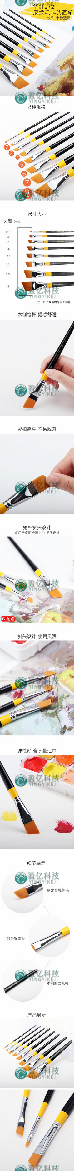 华虹(HWAHONG) 972斜头画笔 平头刷水彩画笔图案画粉笔模型笔刷粉底刷眼线笔 尼龙毛水彩笔 8支全套