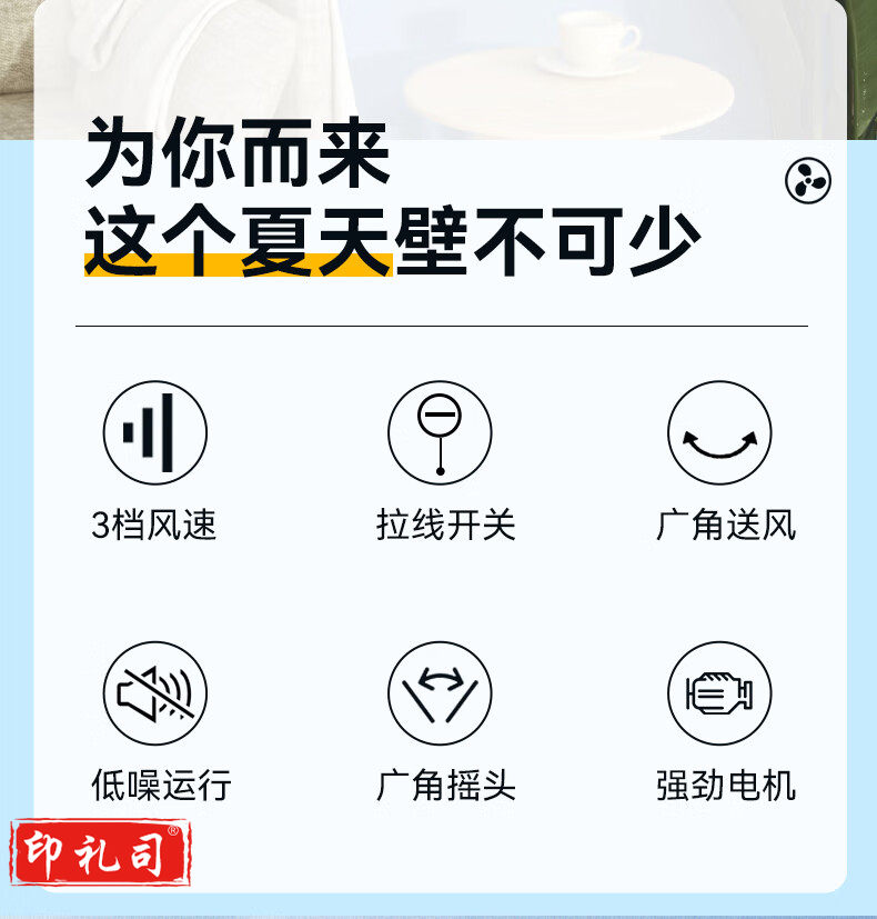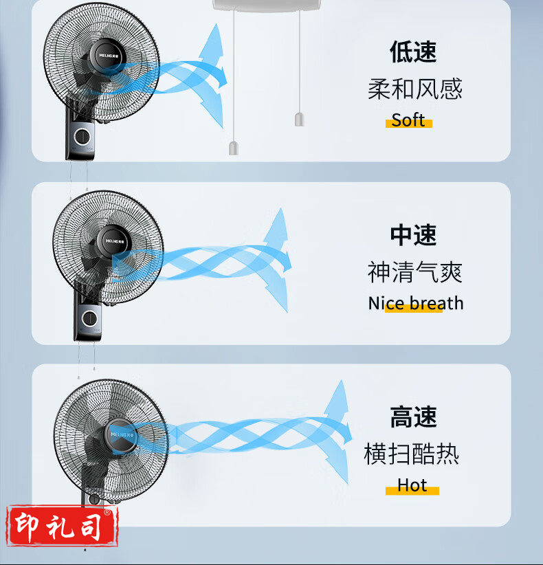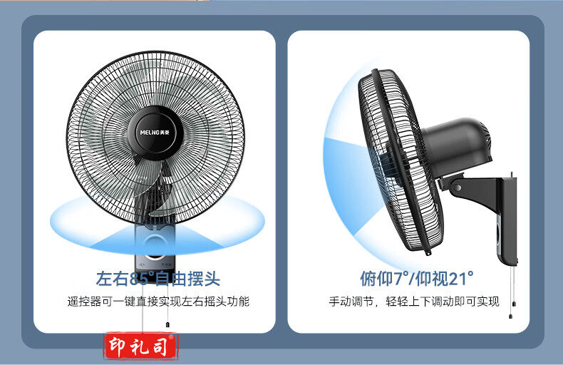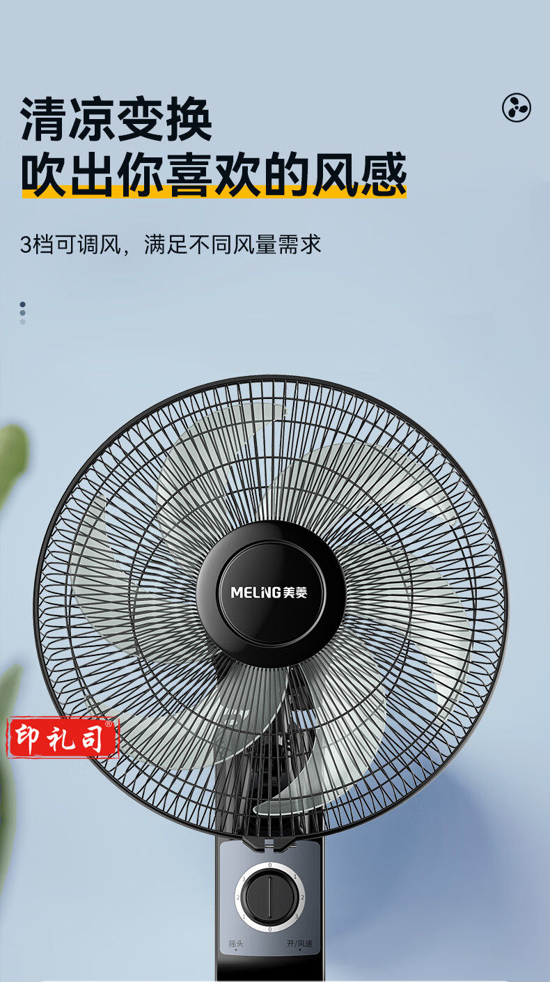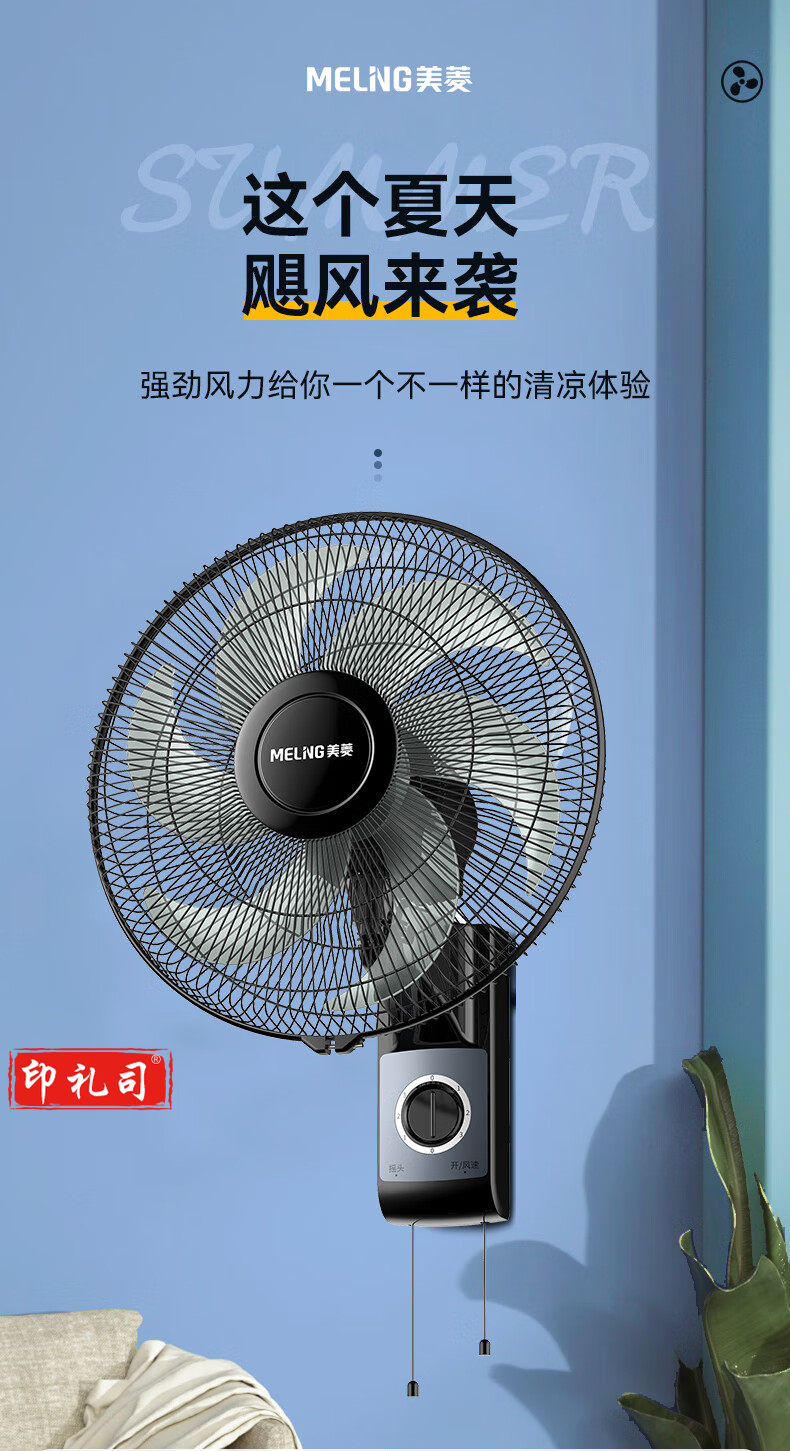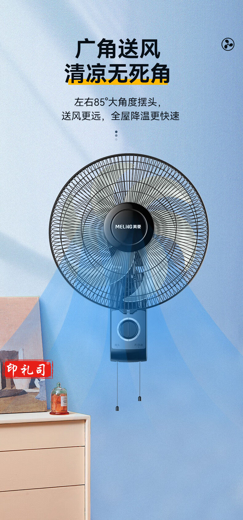 美菱(MeiLing)电风扇/壁扇 六叶机械大风量 家用客厅墙壁摇头挂扇挂式风扇三档调速 轻音节能摇头壁扇 FB16-1