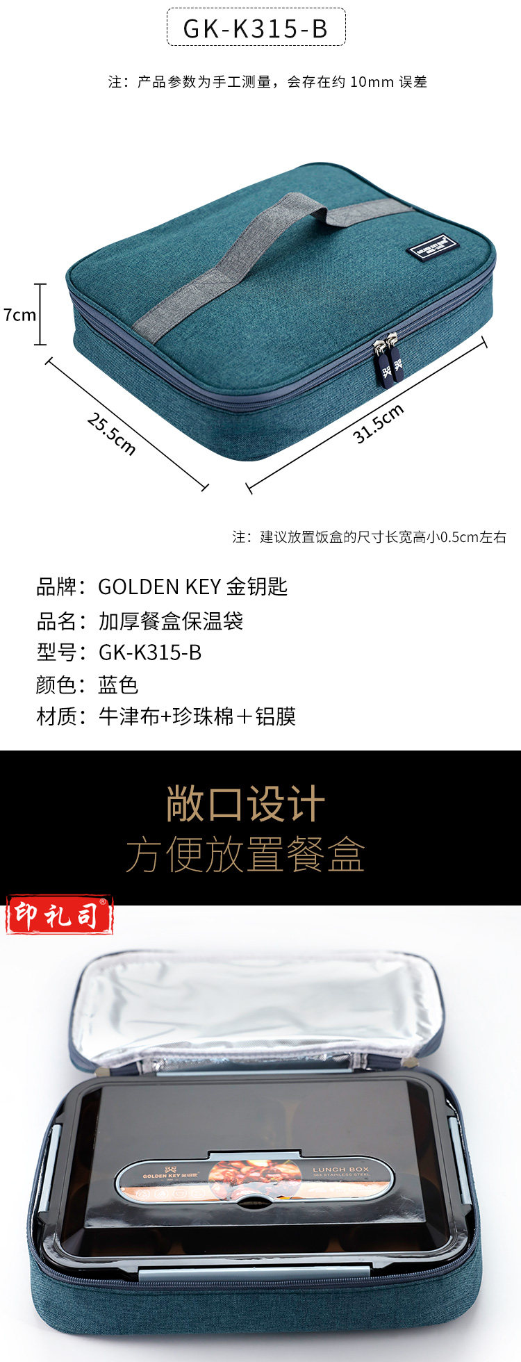 金钥匙(GOLDEN KEY)快餐盒保温袋 加厚方形手提铝箔保温饭盒保鲜盒包(蓝色)大号GK-K315-B