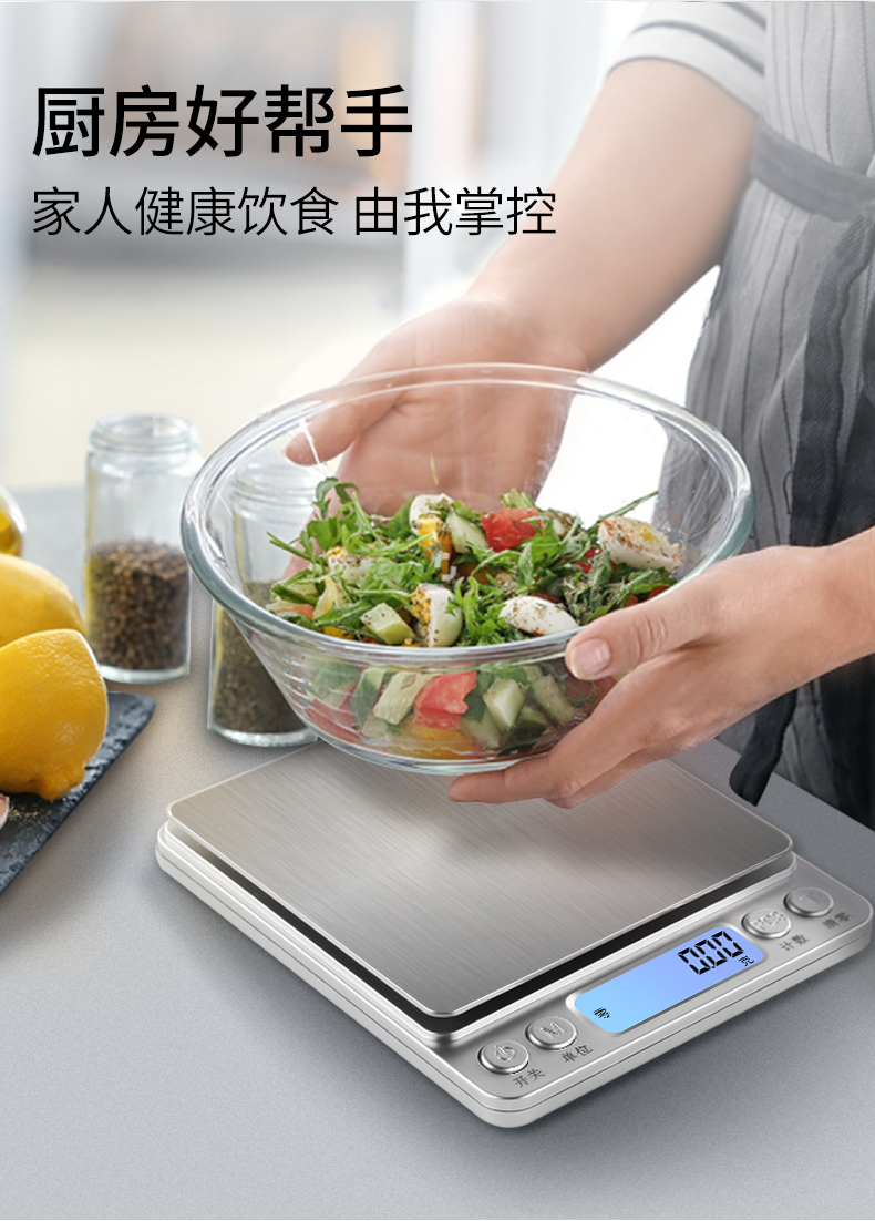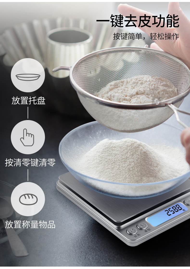 酷贝精准厨房电子秤克称小型电子称辅食克重茶叶食物食材 刻度秤高精度0.01g家用天平迷你称重器孑 中文500g/0.01g+三托盘+防水贴