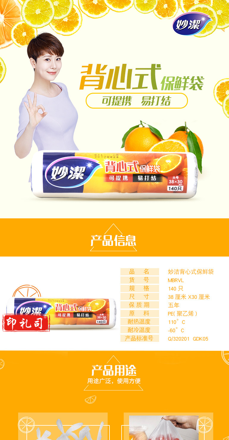妙洁 MBRVL 点断式背心型保鲜袋 大号 38cm*30cm