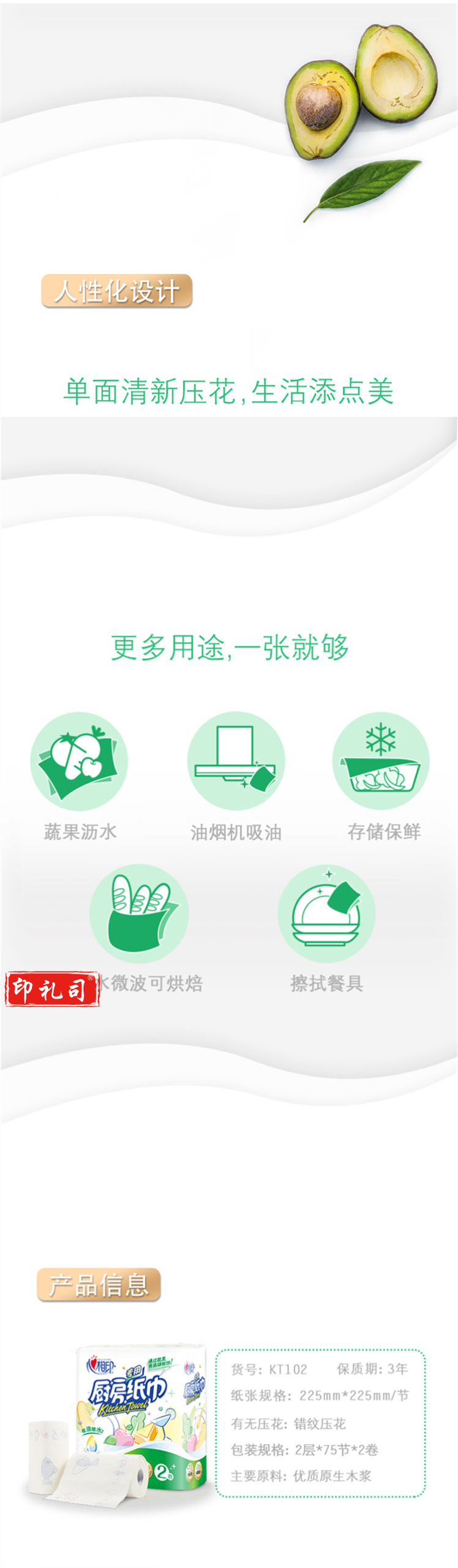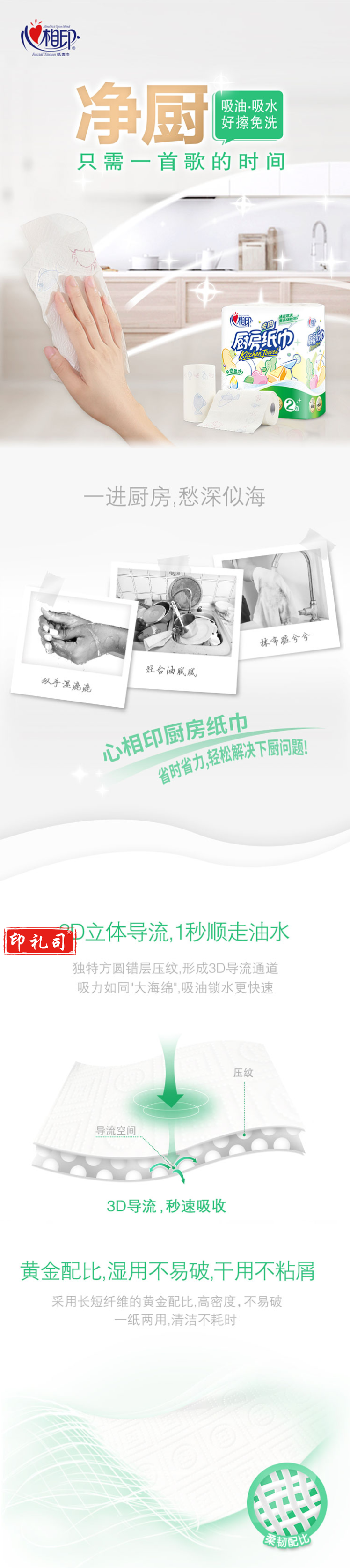 心相印 吸油纸厨房纸 厨房用纸 75节*2卷 厨房纸巾