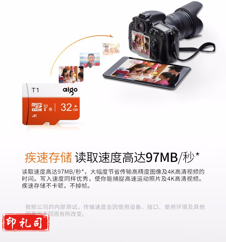 爱国者(aigo) TF(MicroSD)存储卡 T1高速版 读速97MB/s C10高速专业版64G