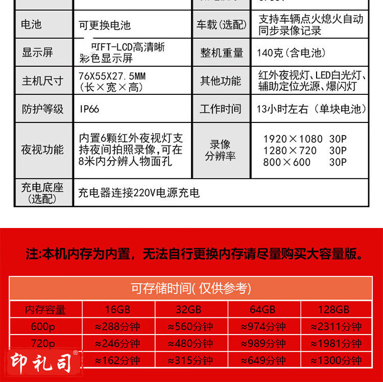 普法眼 DSJ-PF8 32G防爆记录仪高清持续录像内置 32G版 台