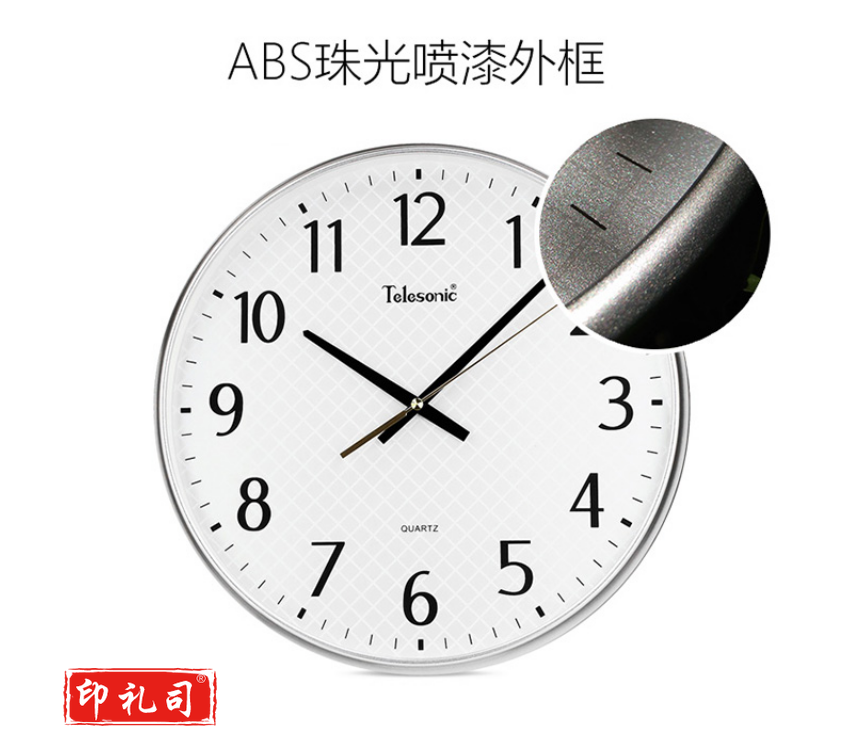 天王星Q3644-3 挂钟 石英钟 办公钟表 简约 黑色