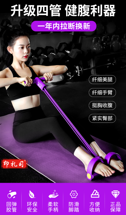 李宁USP426 脚蹬拉力器拉力绳健身器材仰卧起坐辅助器多功能脚踏瑜伽环卷腹家用普拉提运动弹力带 三色可选
