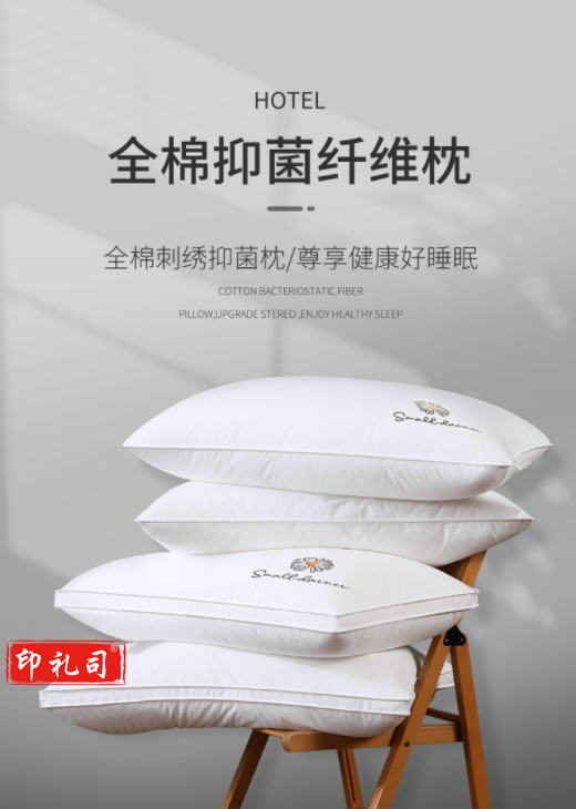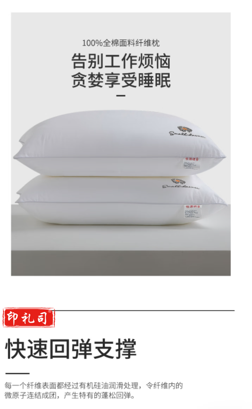 恒源祥全棉抗菌刺绣枕芯颈椎枕星级酒店枕头一对装升级高弹【中枕对装】