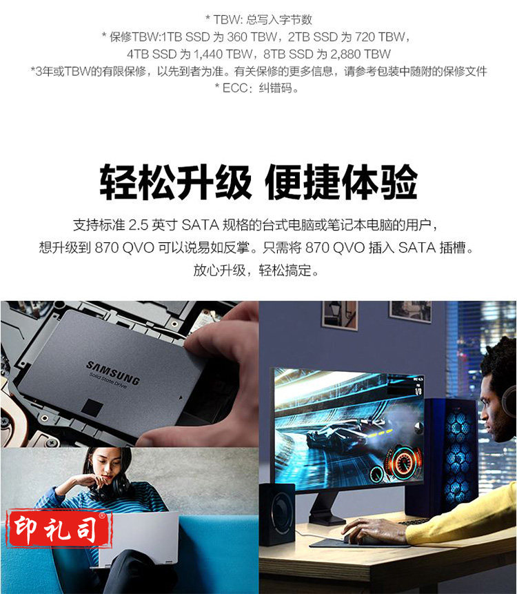 三星MZ-77Q1T0B 1TB SSD固态硬盘 SATA3.0接口 870 QVO