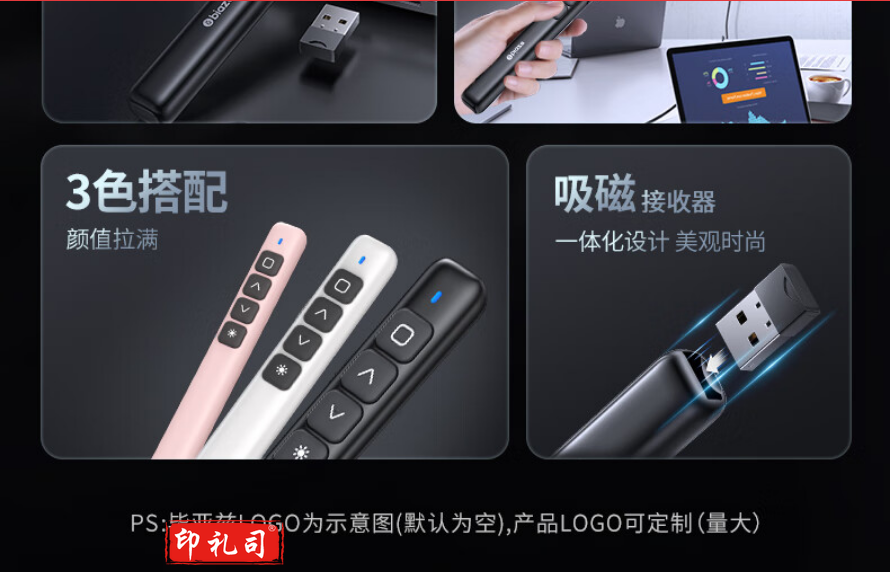 毕亚兹 激光笔 百米远控翻页笔电子笔演讲笔 ppt翻页笔bi19 粉
