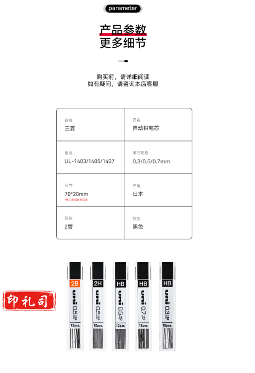 三菱(Uni)自动铅笔芯 UL-1405 活动铅笔芯0.5mm 2B 2管装