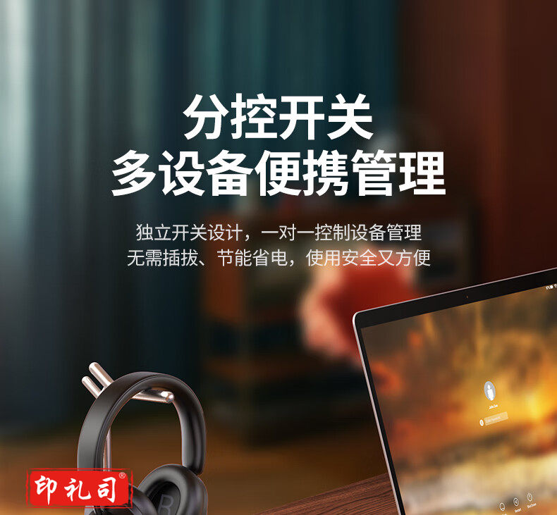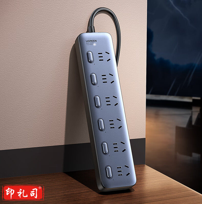 绿联CD303 新国标6位分控防雷插座 抗电涌防电涌插线板/插排/排插/插板/接线板/拖线板 线长1.8米 全长2米