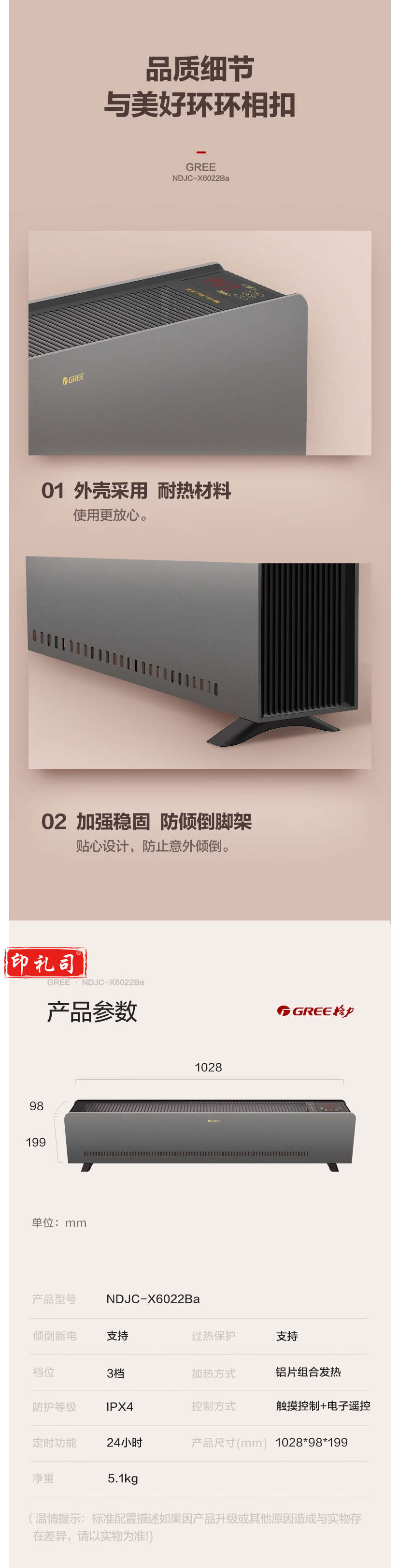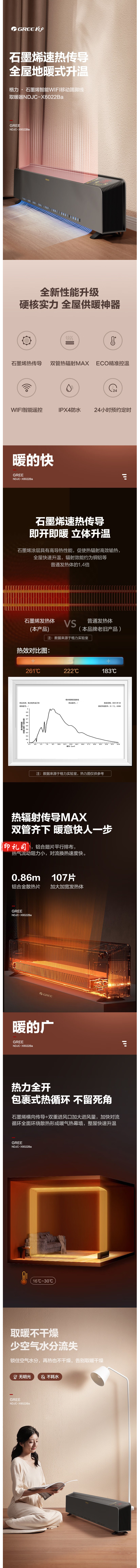 格力(GREE) WIFI踢脚线取暖器家用家电暖气片电暖气石墨烯取暖器 NDJC-X6022Ba