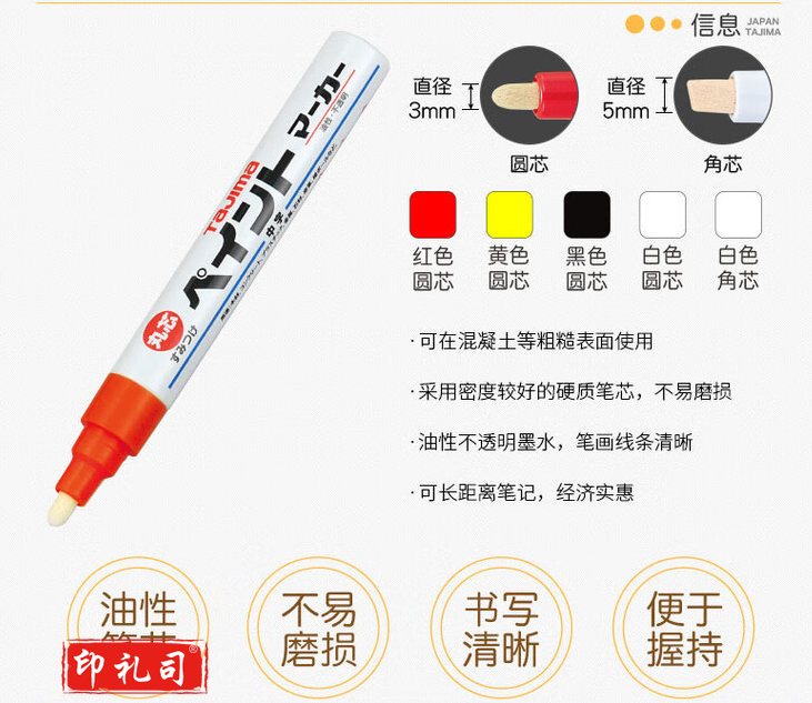 日本田岛油性笔进口建筑用容易标识油漆笔耐久好油性不透明 油漆笔(黑色)3009-2492
