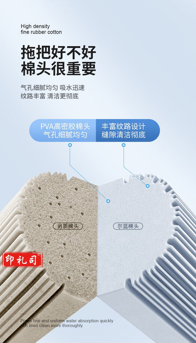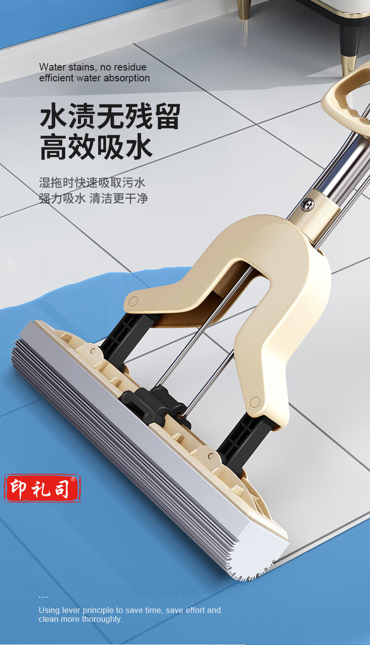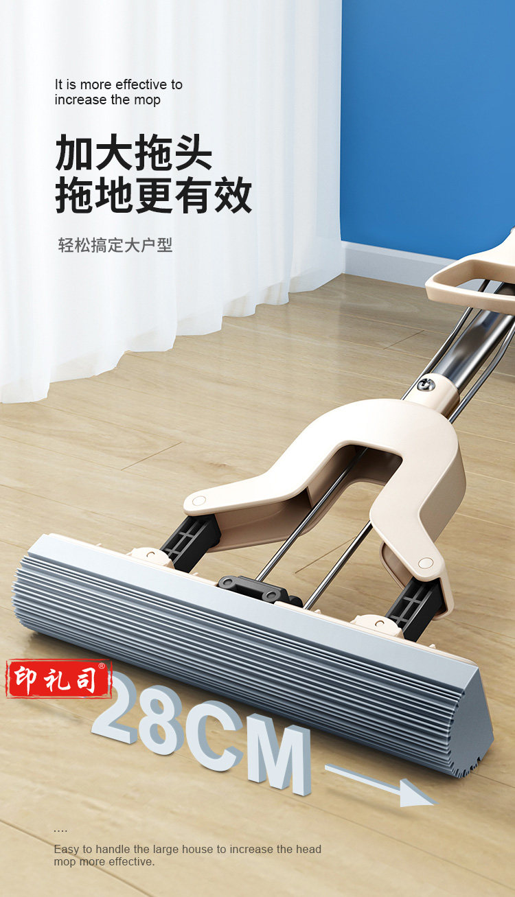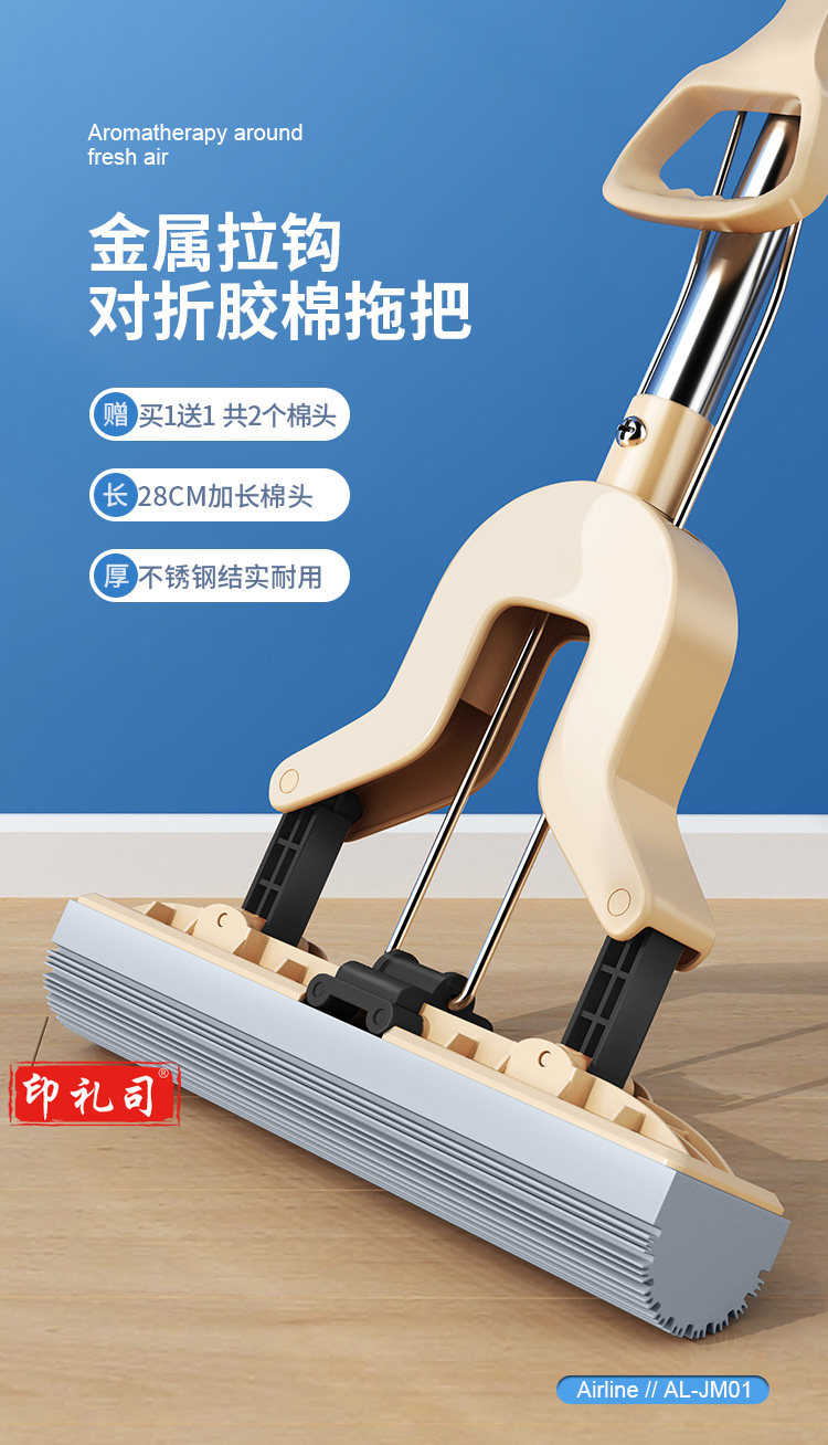 尔蓝 家用不锈钢拉杆对折胶棉拖把 海绵拖布免手洗懒人2个头AL-JM01