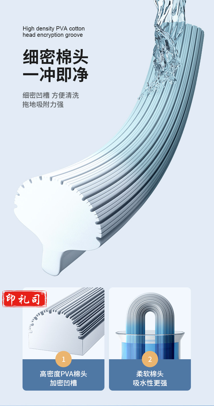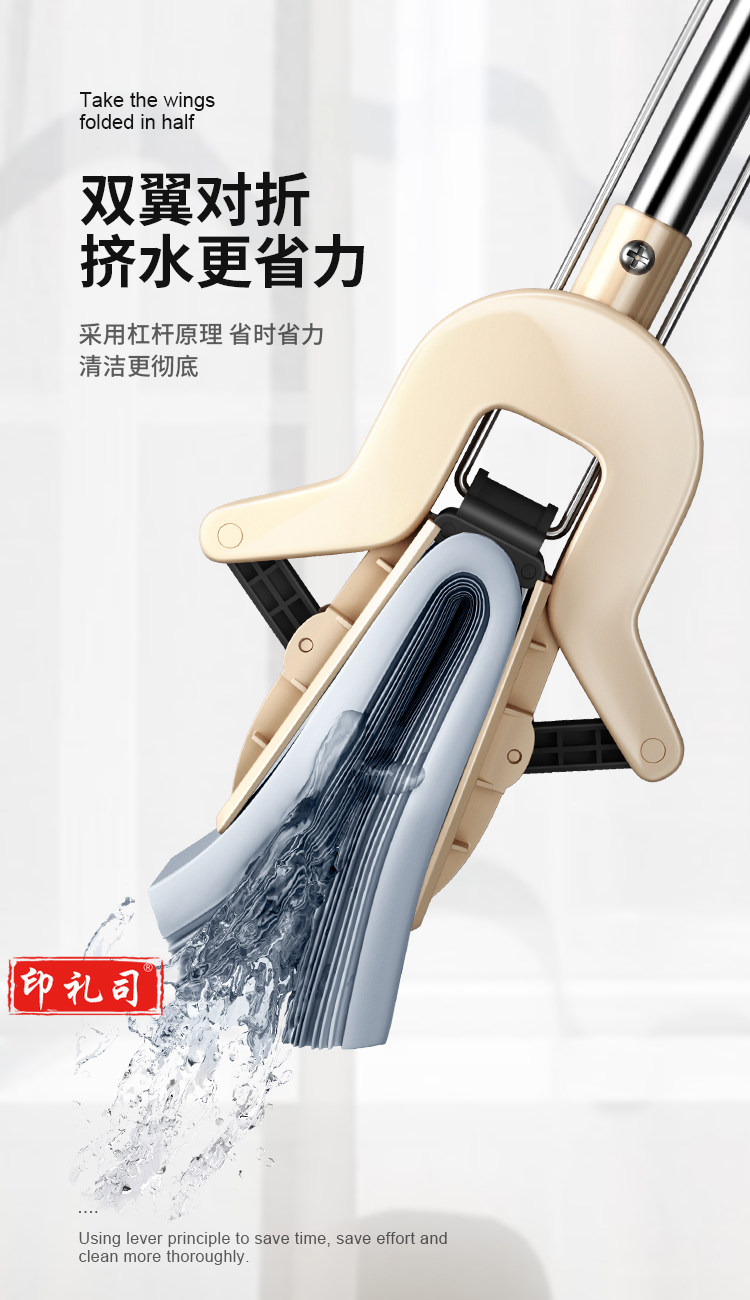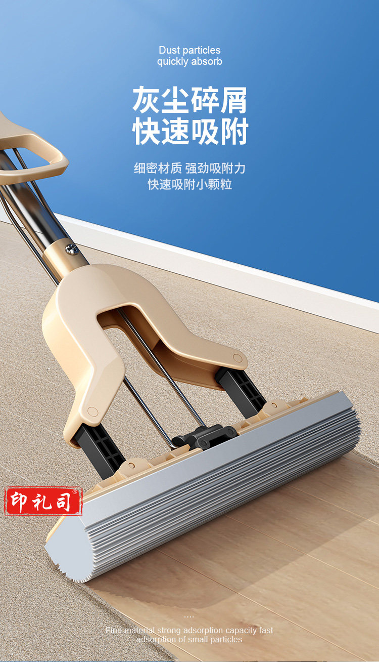 尔蓝 家用不锈钢拉杆对折胶棉拖把 海绵拖布免手洗懒人2个头AL-JM01