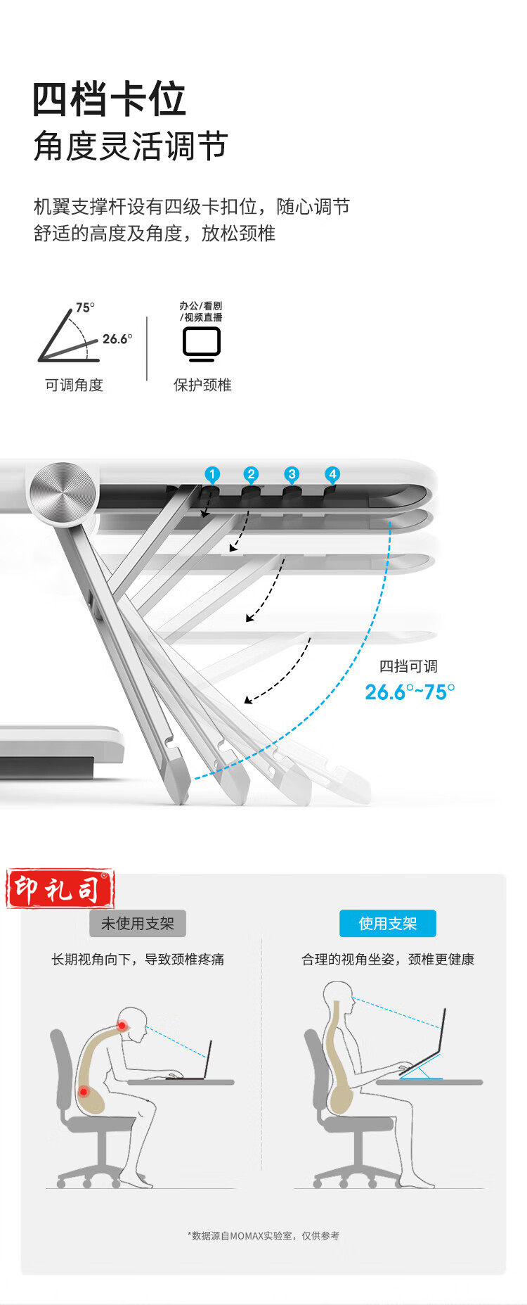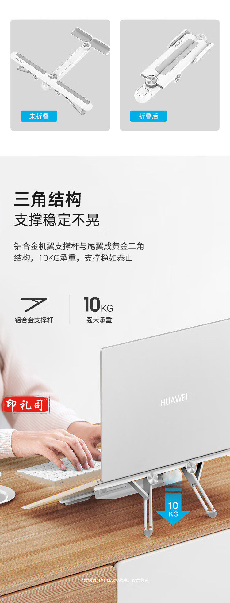 摩米士笔记本支架电脑支架散热器创意折叠便携收纳铝合金立式增高架适用苹果Macbook华为联想拯救者等白色