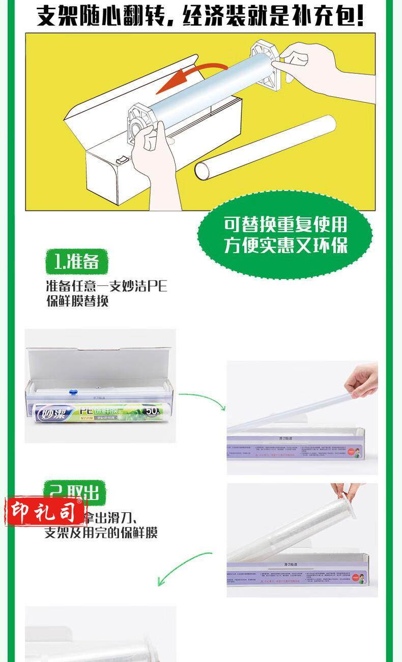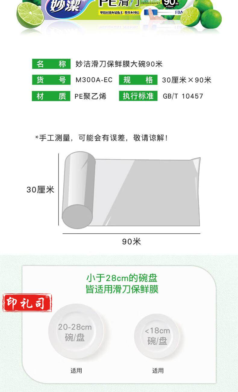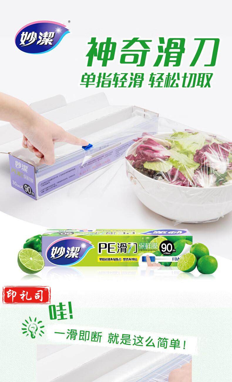 妙洁 一次性滑刀保鲜膜 微波炉冰箱适用 盒装90米 单指轻滑 轻松切取