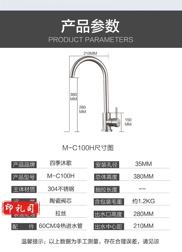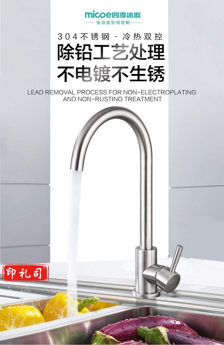 四季沐歌 MICOE M-C100H家用304不锈钢厨房水龙头 厨房水槽冷热龙头 360°自由旋转洗菜盆龙头