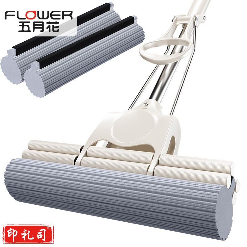 五月花 滚轮式免手洗33cm胶棉拖把海绵吸水地拖免手洗墩布2头JM04