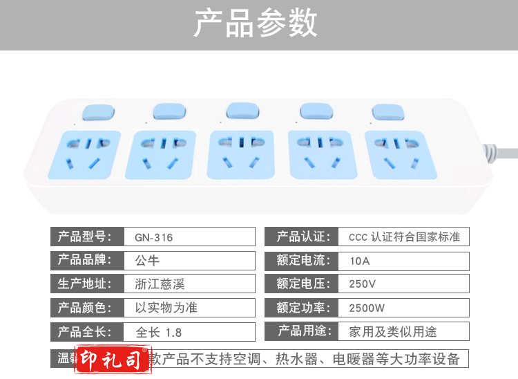 公牛(BULL) GN-316 插座 独立开关1.8米5孔