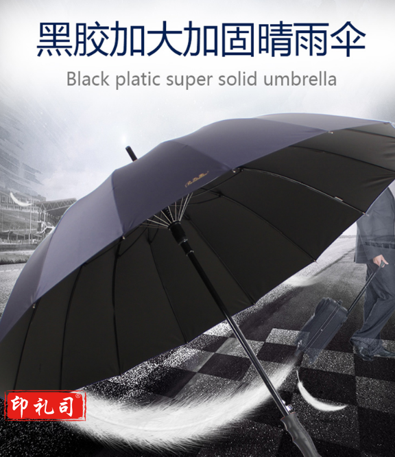 天堂伞 加大加固16根伞骨碰击布黑胶自开商务直杆高尔夫晴雨伞太阳伞 深藏青 10009ELCJ