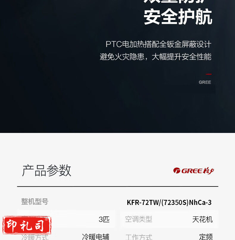 格力(GREE)中央空调 天花机 3匹 定频冷暖 380V 3级能效 商用空调KFR-72TW/(72550S)NhCaf-3 yykj-241111173319