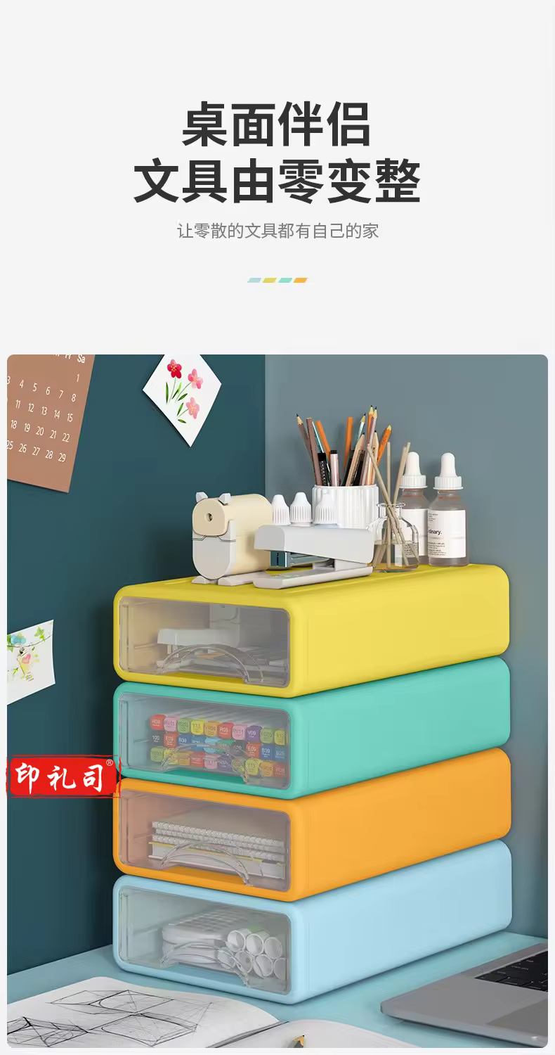 桌面收纳盒抽屉式 4个装 四层【橘+黄+绿+蓝】
