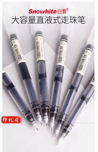 白雪(snowhite)0.5mm中性笔学生速干签字笔水笔直液式走珠笔T16办公用品 黑色30支/盒