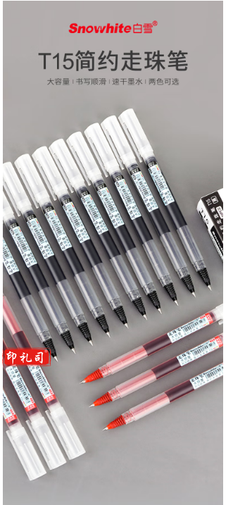 白雪(snowhite)直液笔速干笔签字笔 0.5mm直液式中性笔 学生水笔走珠笔 黑色 30支/盒 T15 一盒价