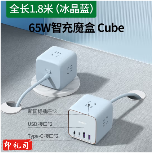 绿联智充魔盒苹果PD快充头充电器插座智能排插USB充电接线板 蓝色65W氮化镓智充魔盒(90467)