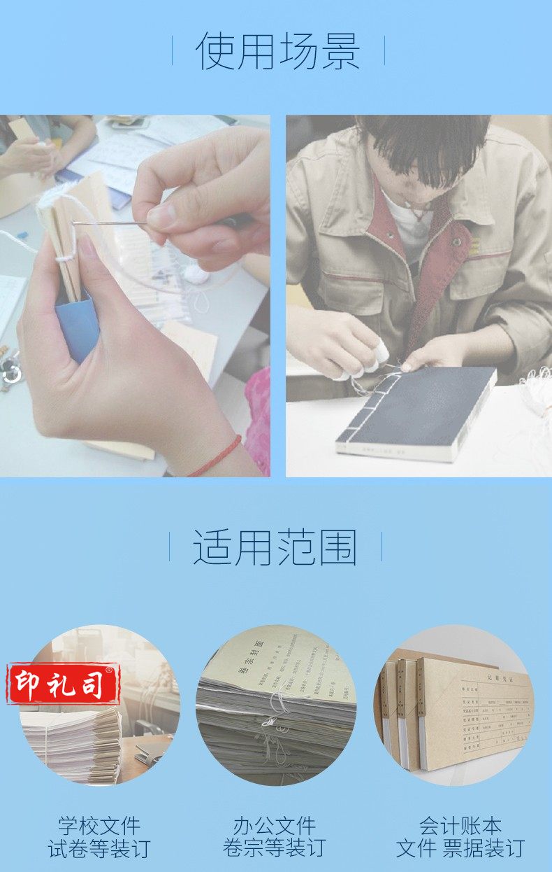 斯图sitoo 20团凭证装订线财务会计账本装订白棉线手工针线档案线绳 粗线档案袋勾锥凭证封面用