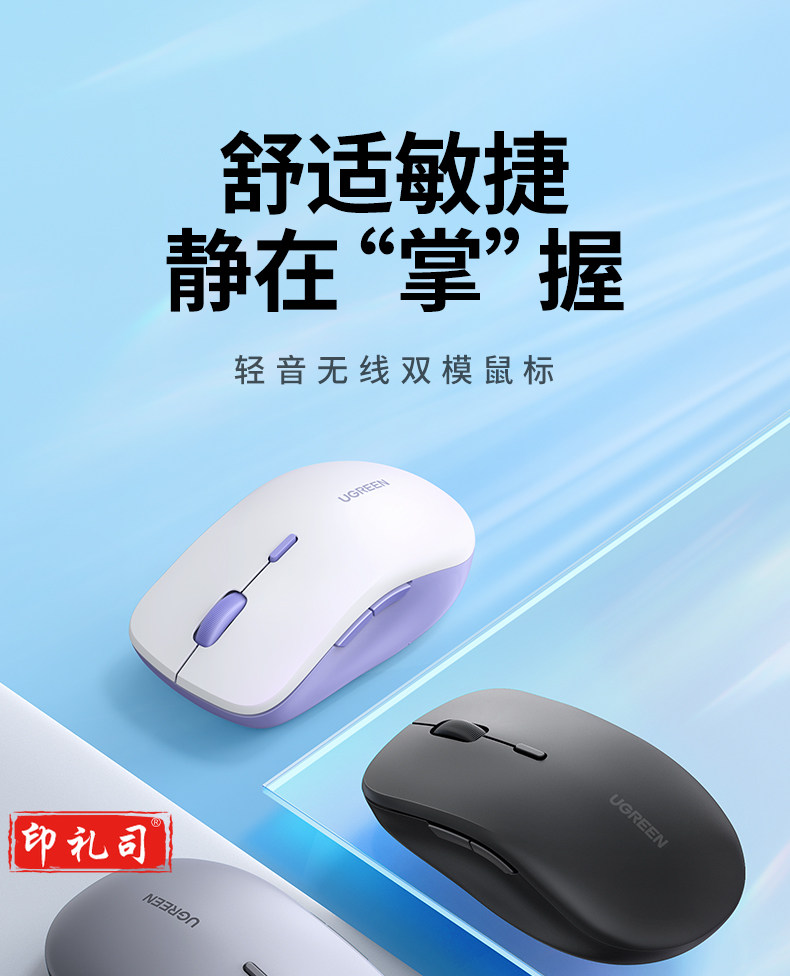 绿联MU002 无线蓝牙鼠标 适用笔记本电脑iPad平板鼠标 台式机轻音办公双模鼠标 薰衣紫