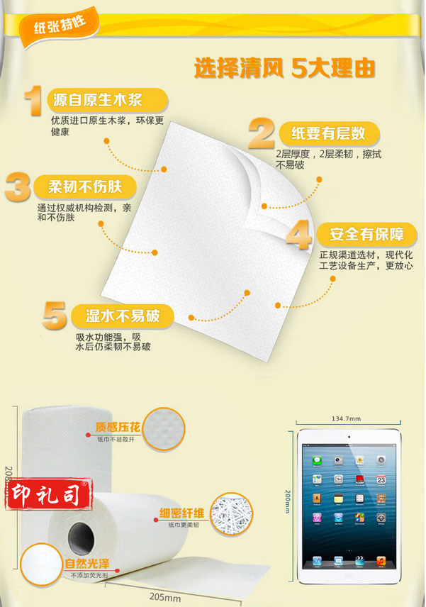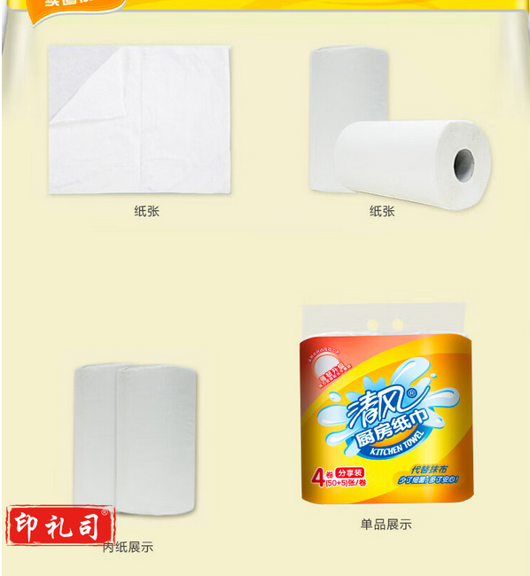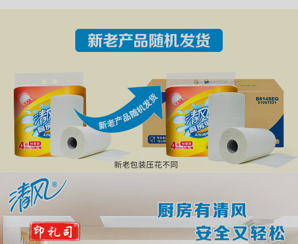 清风 厨房用纸 吸油纸 吸水纸 75段*8卷 加厚加韧厨房卷纸