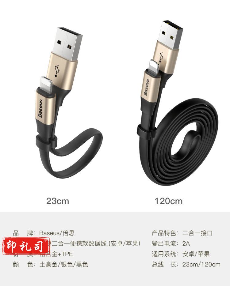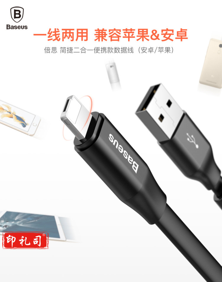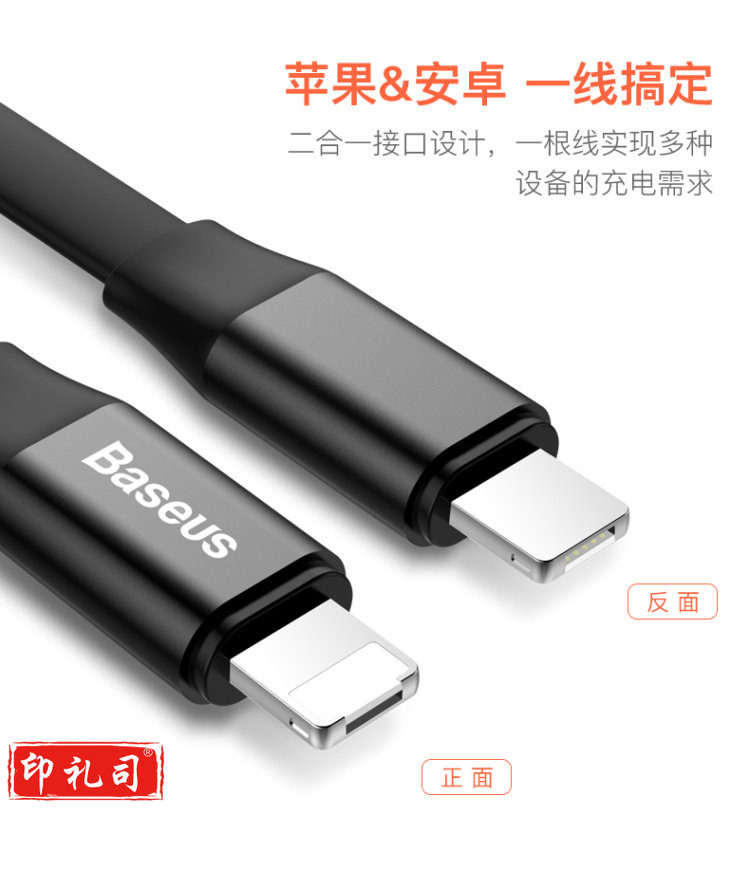 倍思 苹果安卓二合一数据线 适用安卓苹果iphoneX/8/7/6s/Plus/iPad/oppo/vivo电源充电器线 0.23米银CALMBJ-01