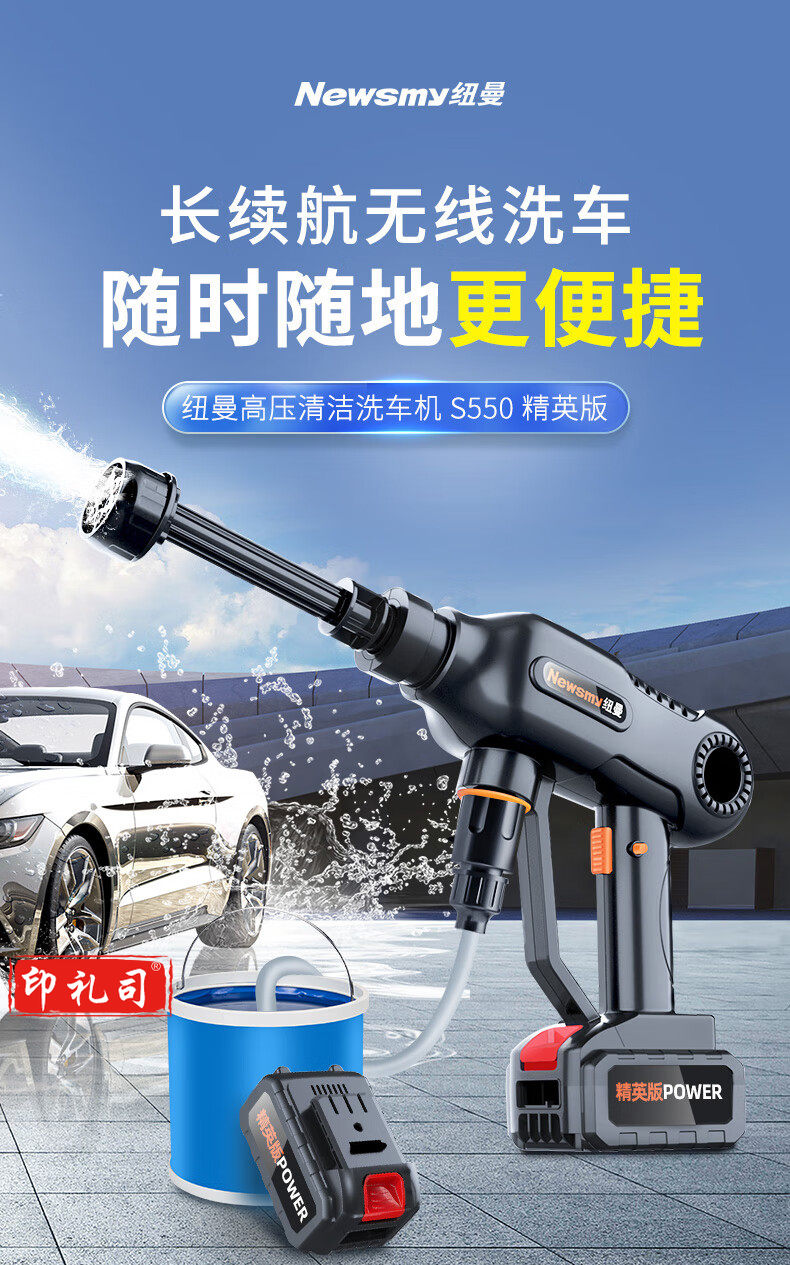 纽曼(Newmine)S550豪华版 高压无线洗车机家用高压水枪 无线锂电洗车水枪