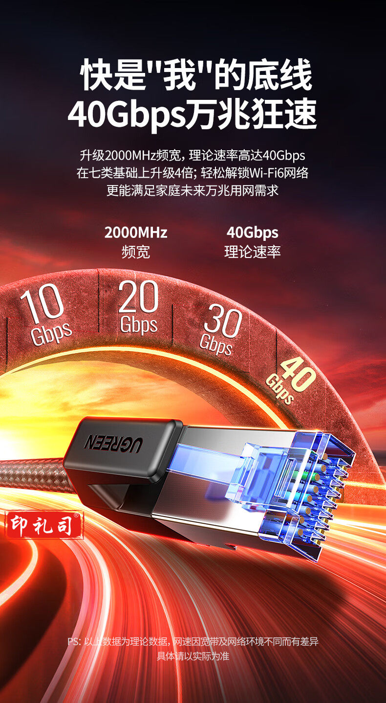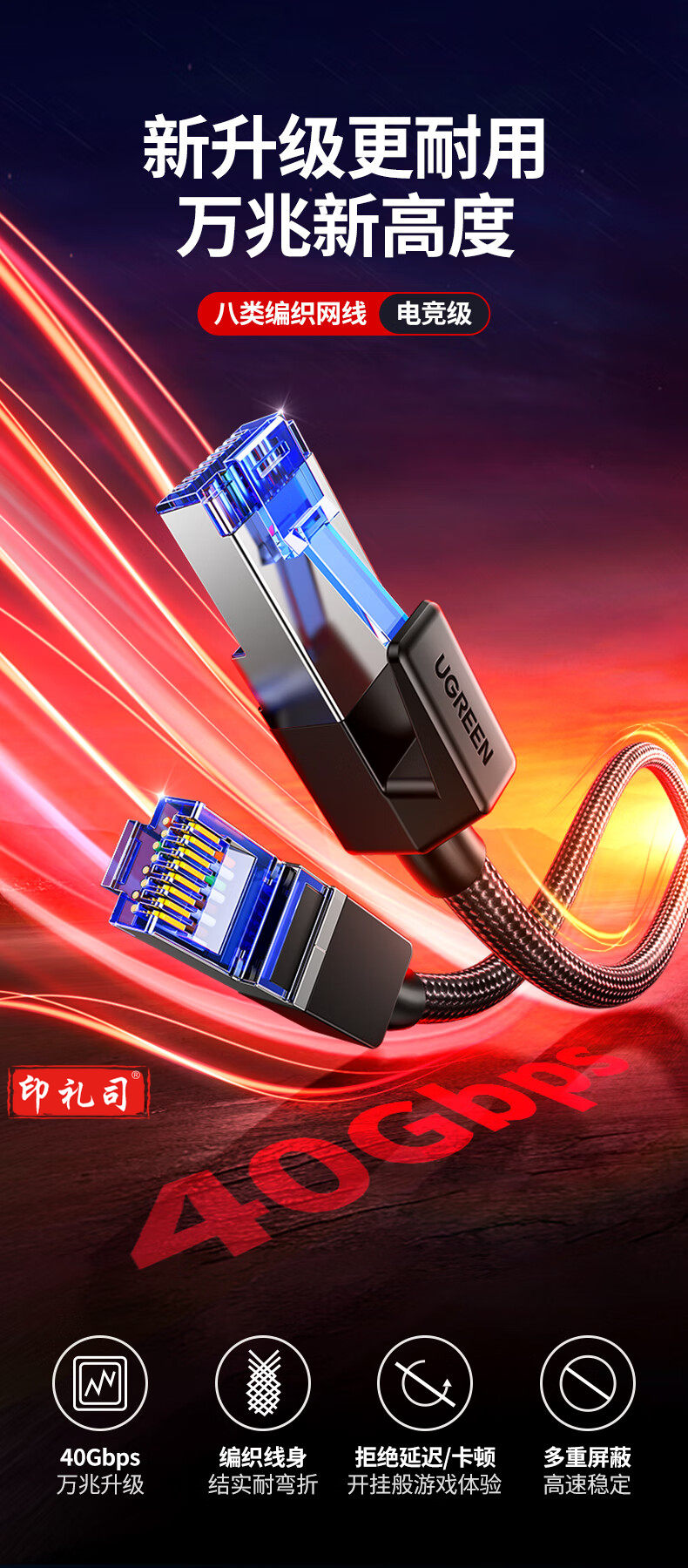 绿联(UGREEN)80430 八类纯铜网线 CAT8类万兆屏蔽网络连接线 8芯双绞线 电脑宽带成品跳线1.5米