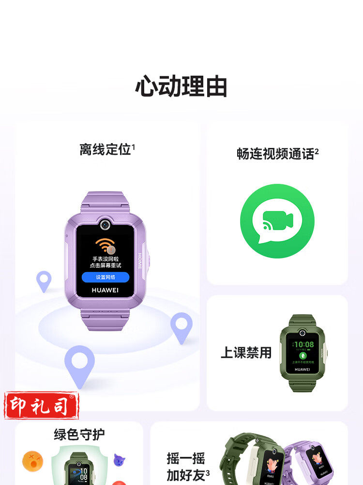 华为(HUAWEI)儿童手表 5 仲夏紫 智能手表 电话手表 离线定位 畅连通话 快充大电池 防沉迷设置 学习无打扰