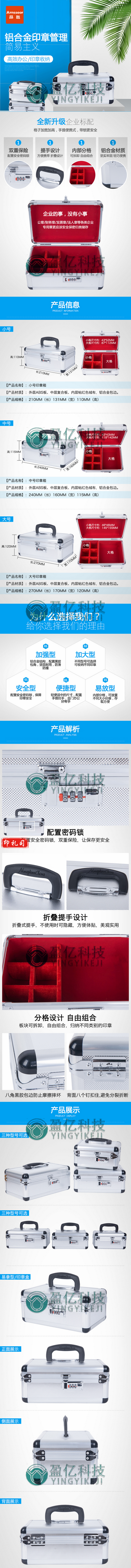 昂胜 公章盒子收纳盒铝合金手提多功能法人章财务章印章箱收纳印章盒 二十格