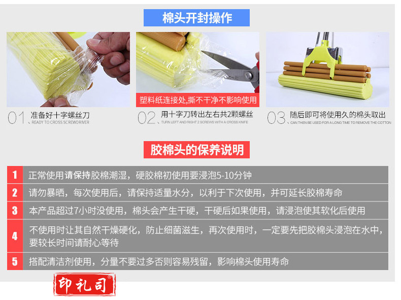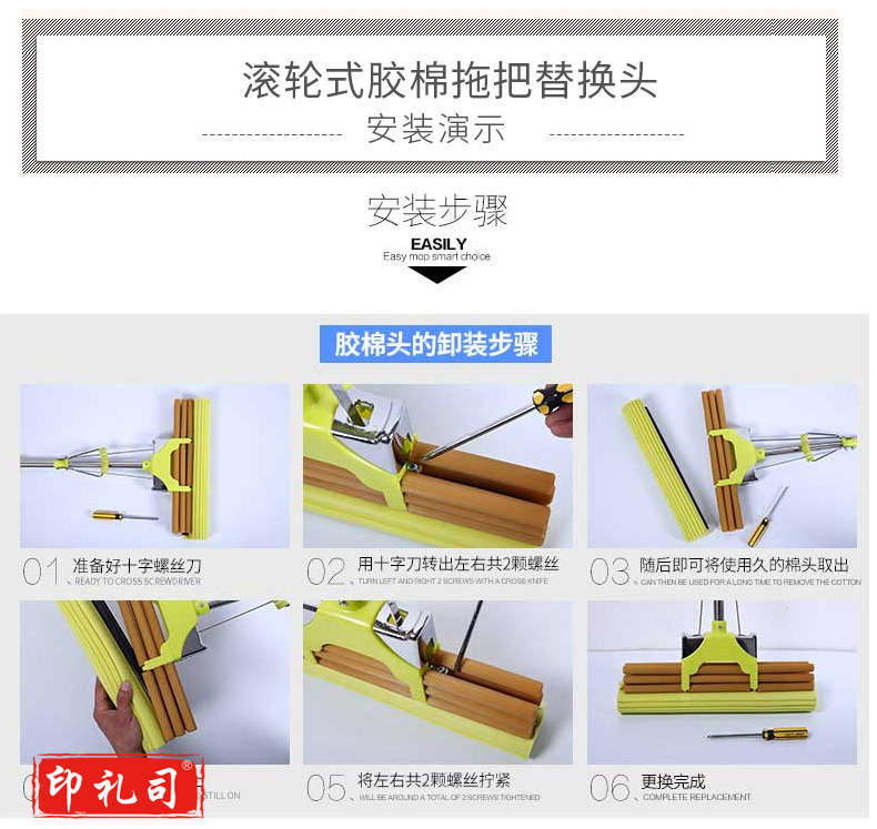 通用拖把头替换装海绵头滚轮式家用胶棉吸水墩布拖布头 四颗螺丝款27cm两只装(灰/黄色随机)