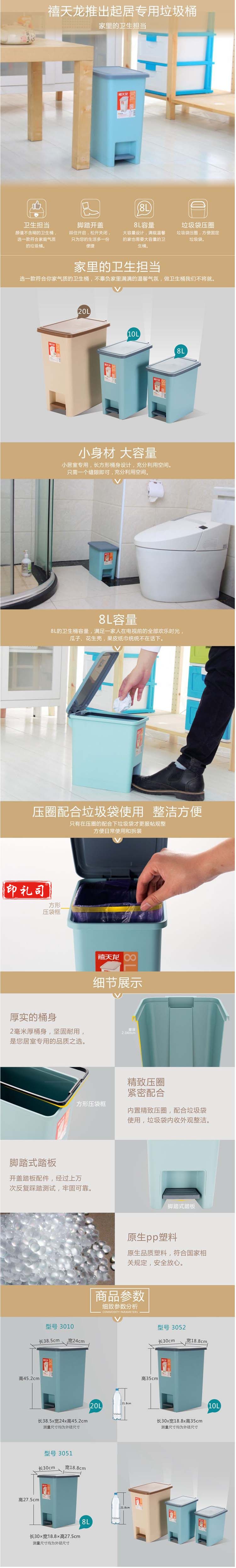 禧天龙(Citylong) T-3052 垃圾桶纸篓300*188*350mm