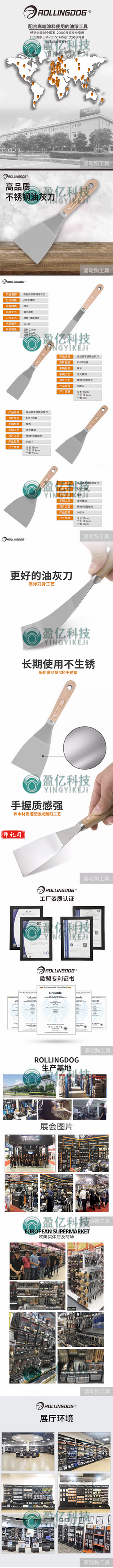 rollingdog滚动狗不锈钢油灰刀 镜面抛光高档抹泥铲刀榉木手柄 3寸50157